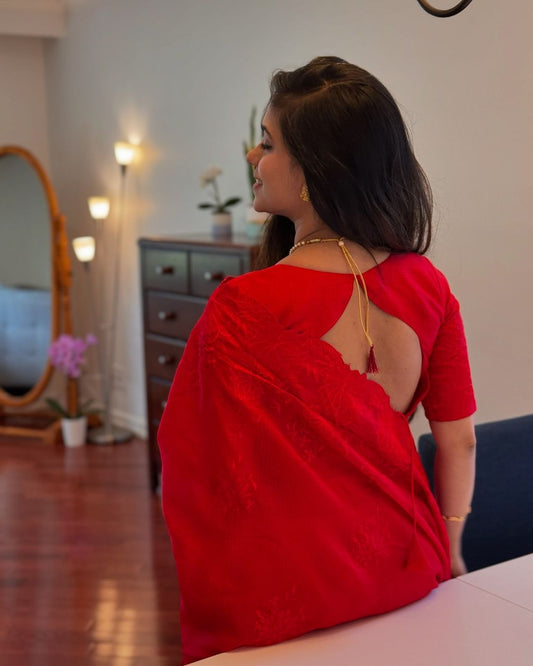 Viscose chinnon saree with banarasi weaving blouse