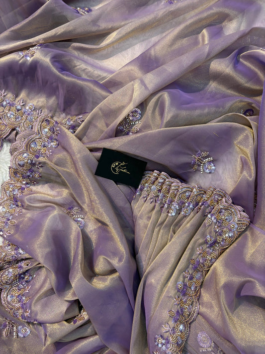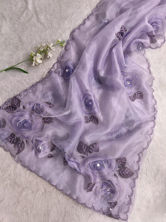 Lavender Organza Saree Aacro work Border and Khatli Work