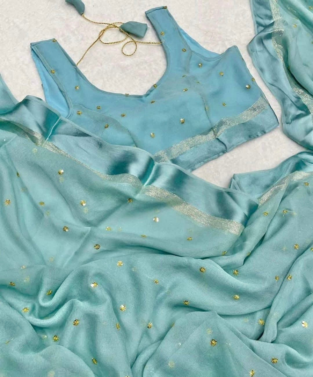 Organza Saree with Pearl and Khatli Work Powder Blue Color