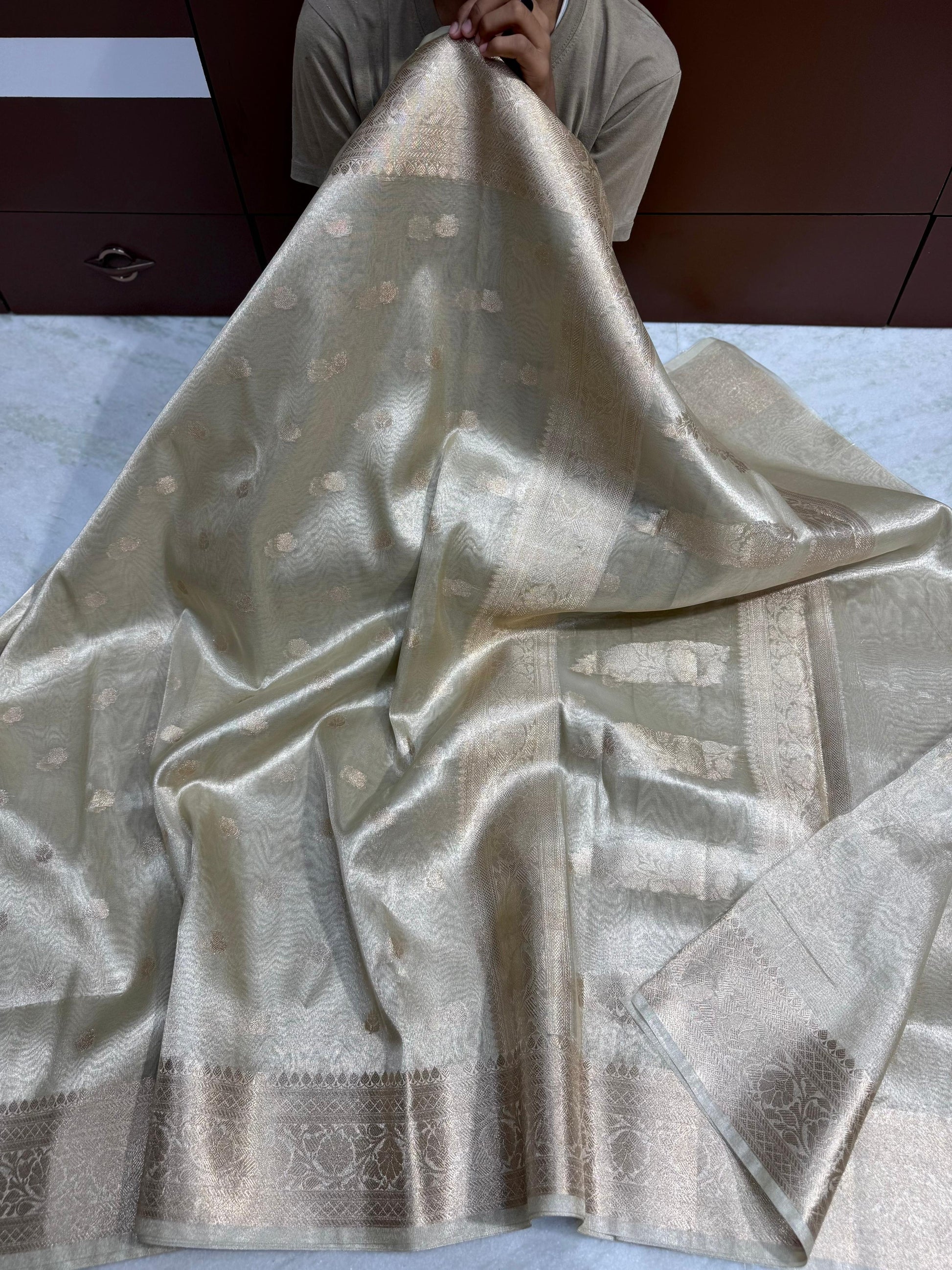 Banarasi tissue silk saree with weaving border, with running blouse pcs