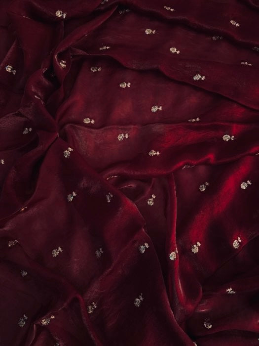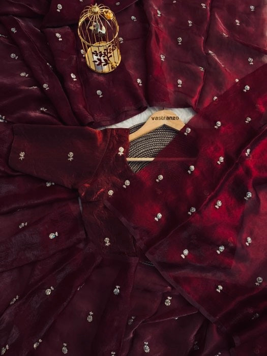 DEEP MAROON Color Stardust Satin Saree Dual Shaded Sequins Jari Butti Work Allover the saree