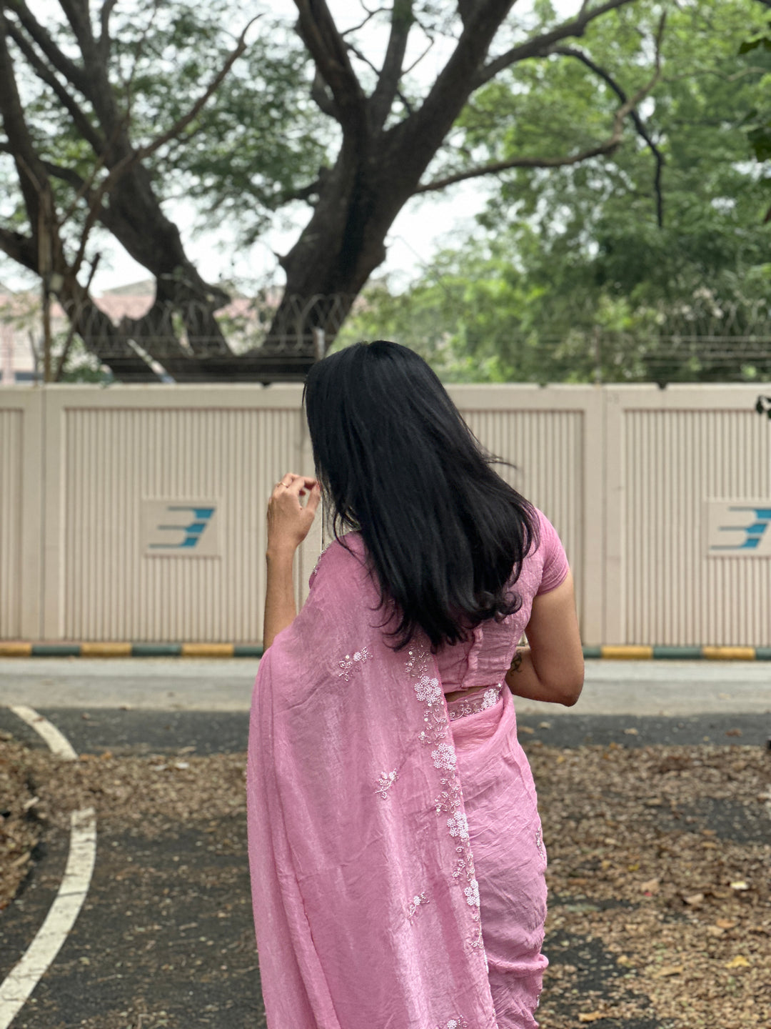LIGHT PINK Chiffon Silk Saree Heavy Handwork with Beads work, Khatli Work, Sequins Work and Aacro Border