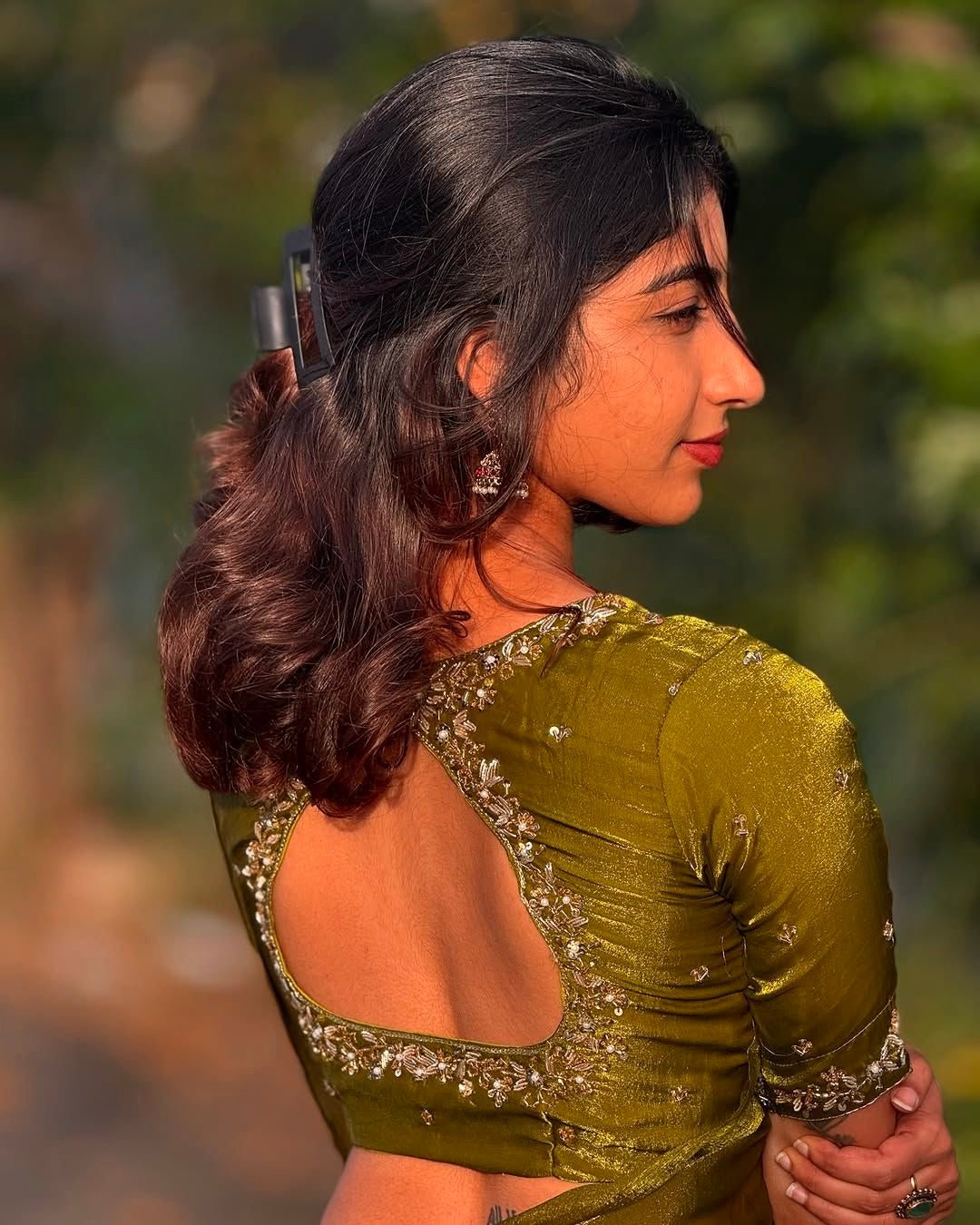 The real magic? That stunning blouse.