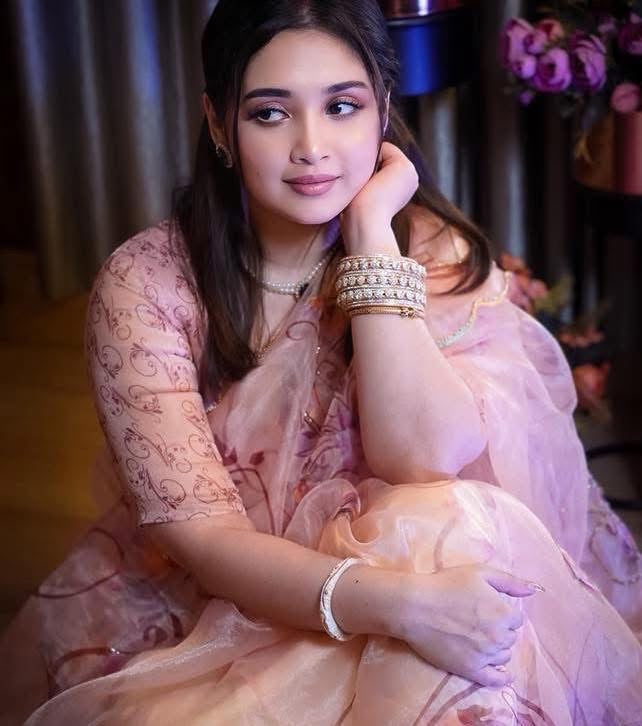 Organza Saree with Pearl work Aacro Border and Khatli Work Paired with Digital Printed blouse Piece