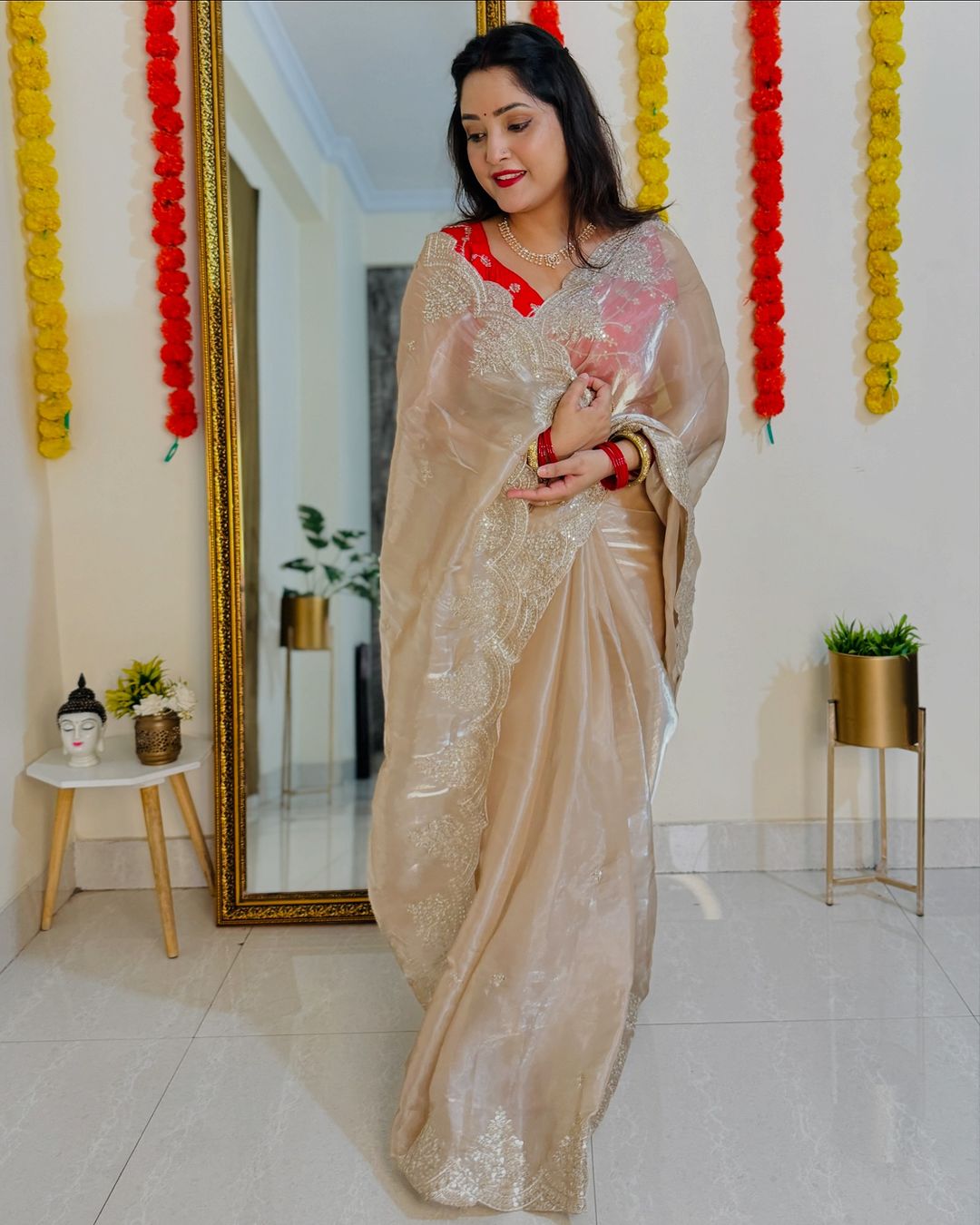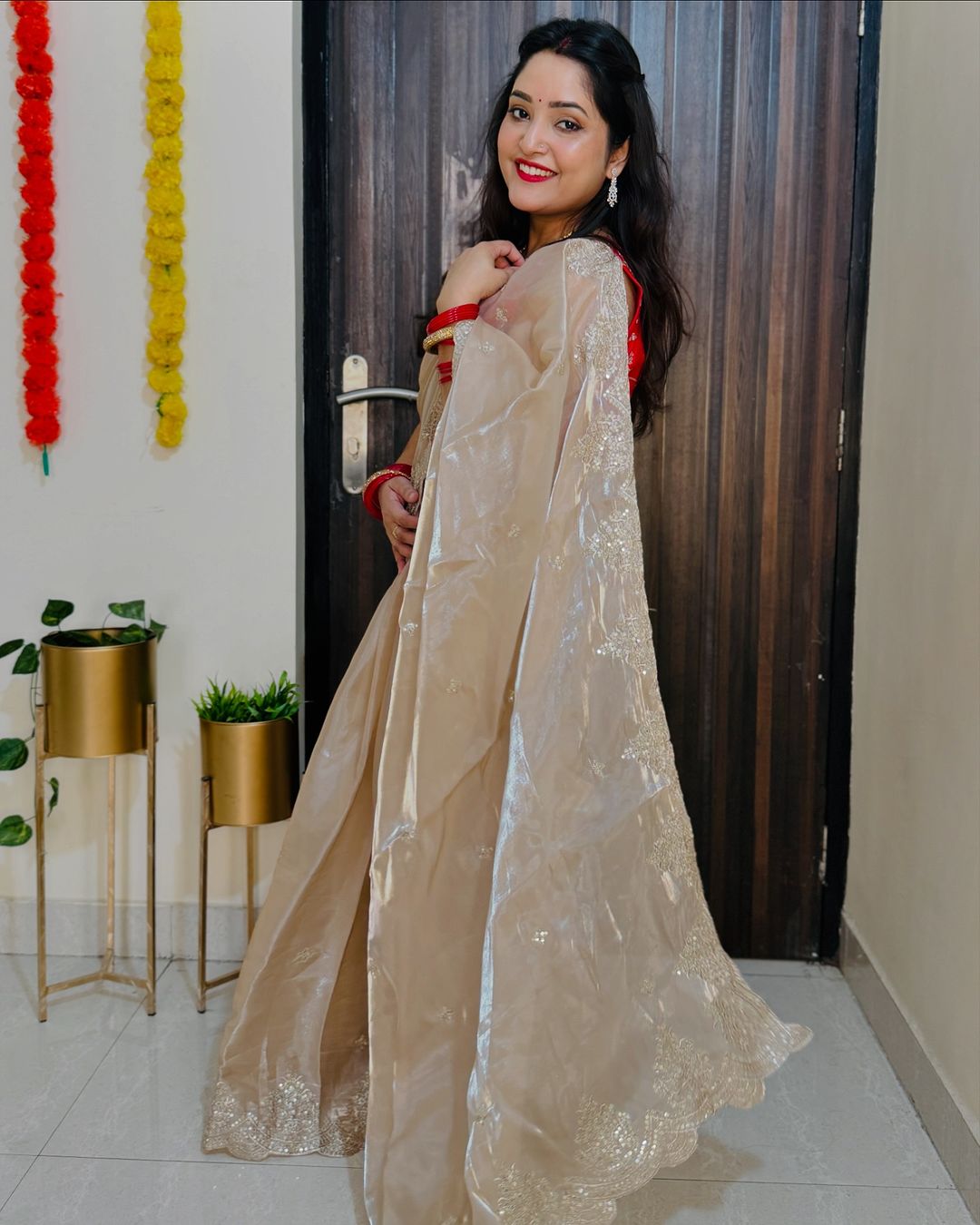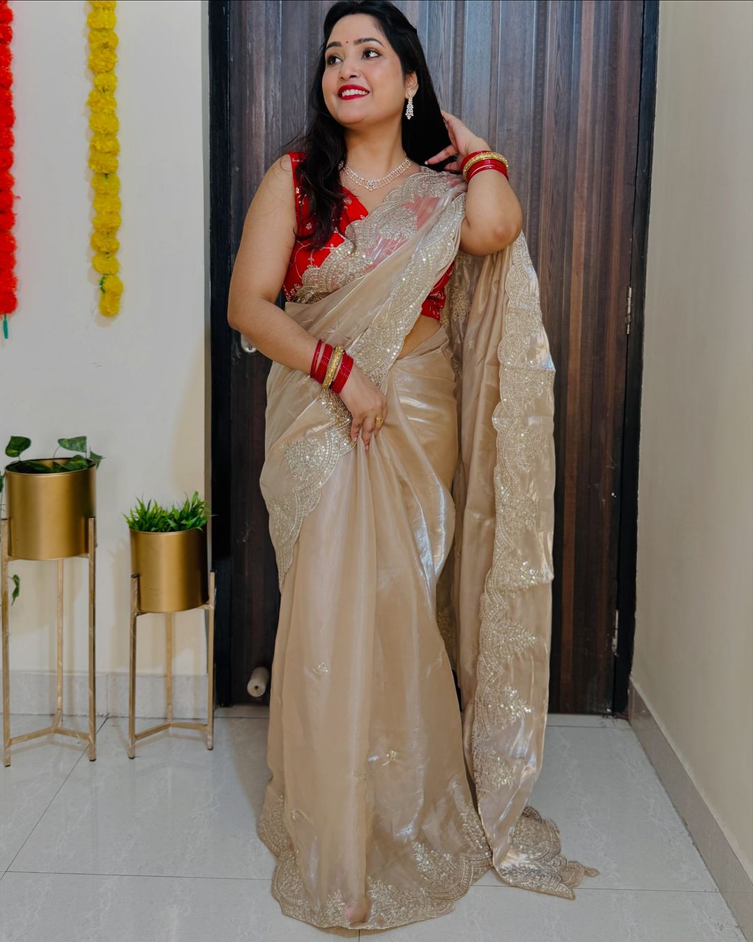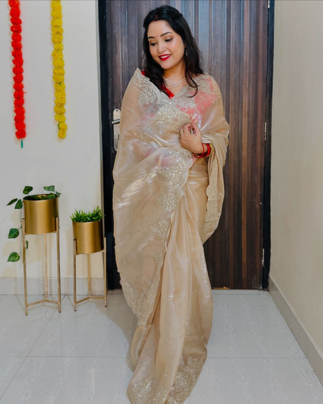 Organza sequins embriodery saree
