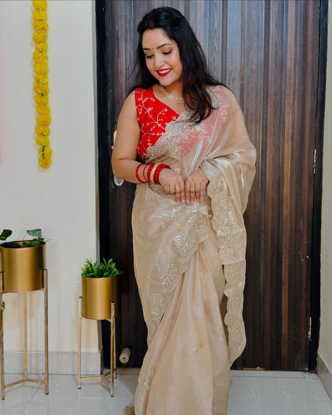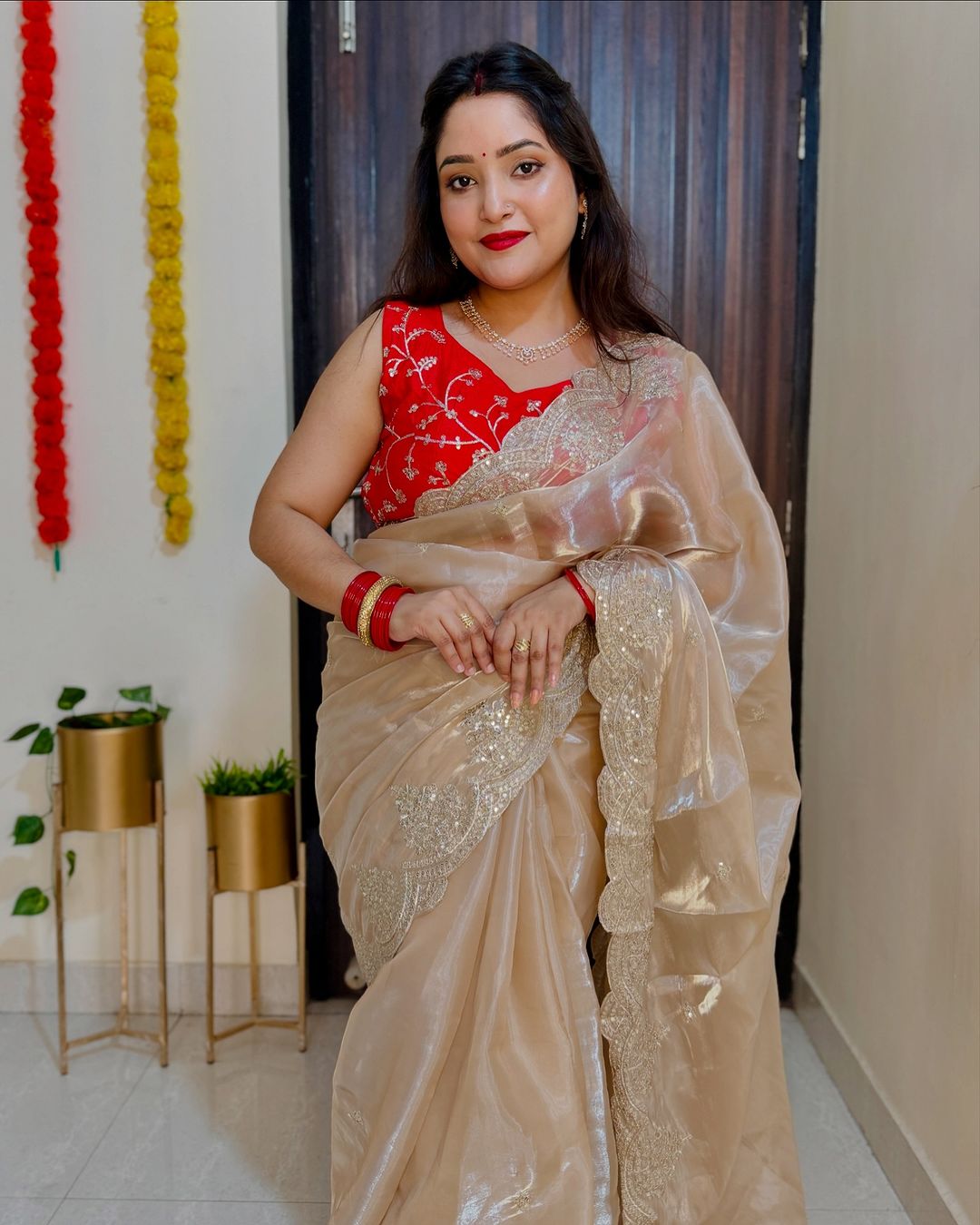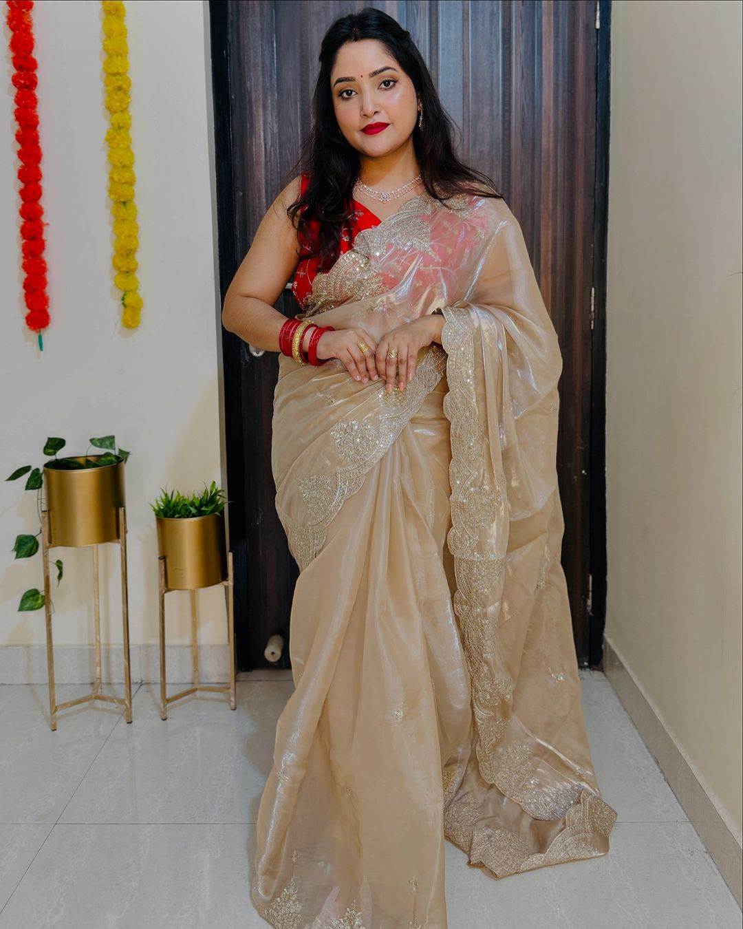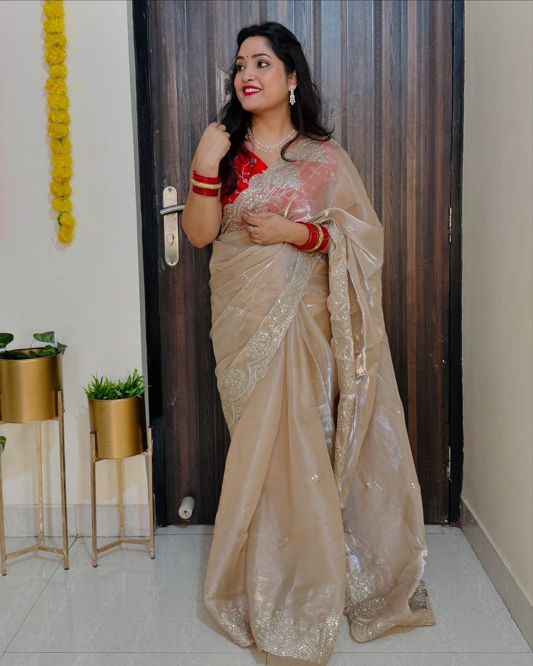 Organza sequins embriodery saree
