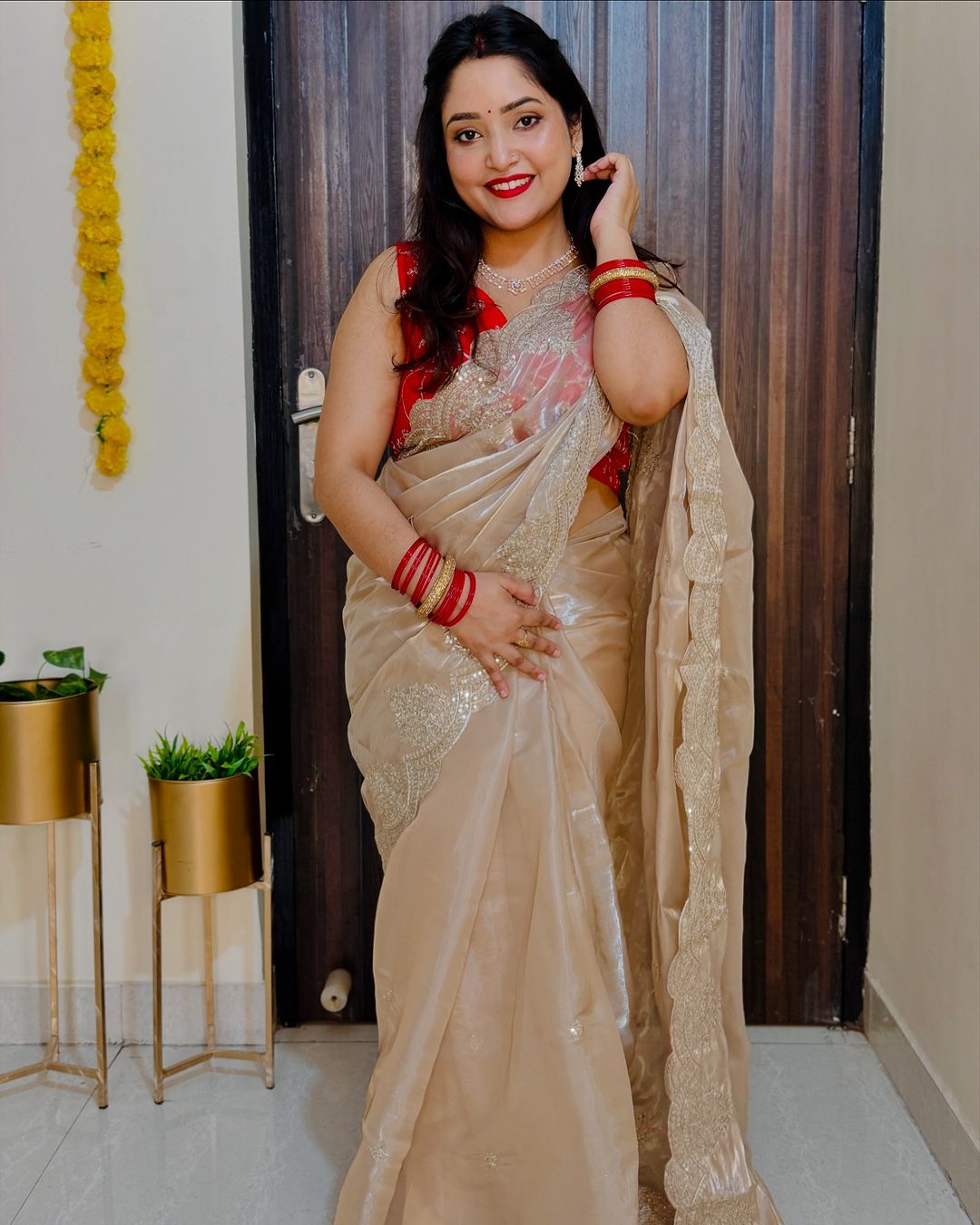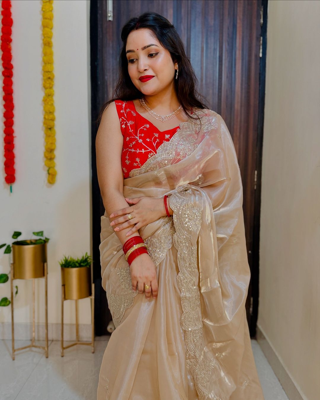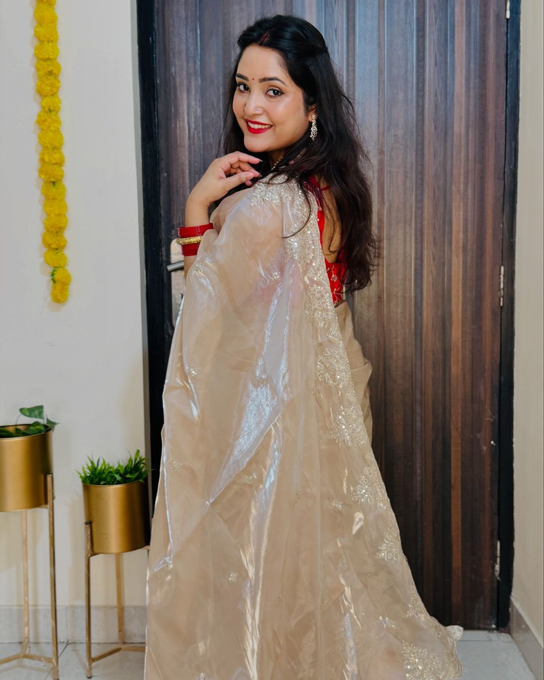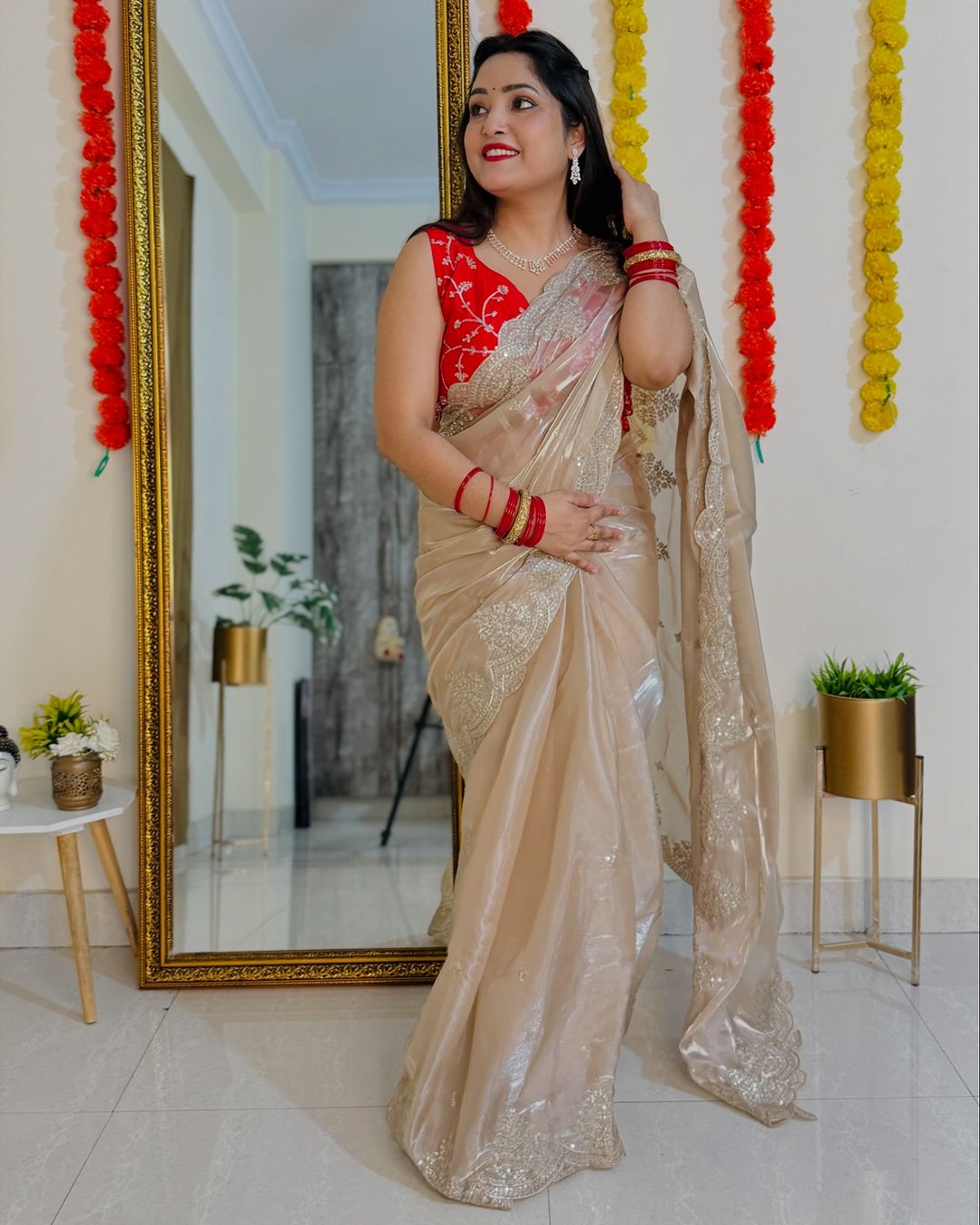 Organza sequins embriodery saree